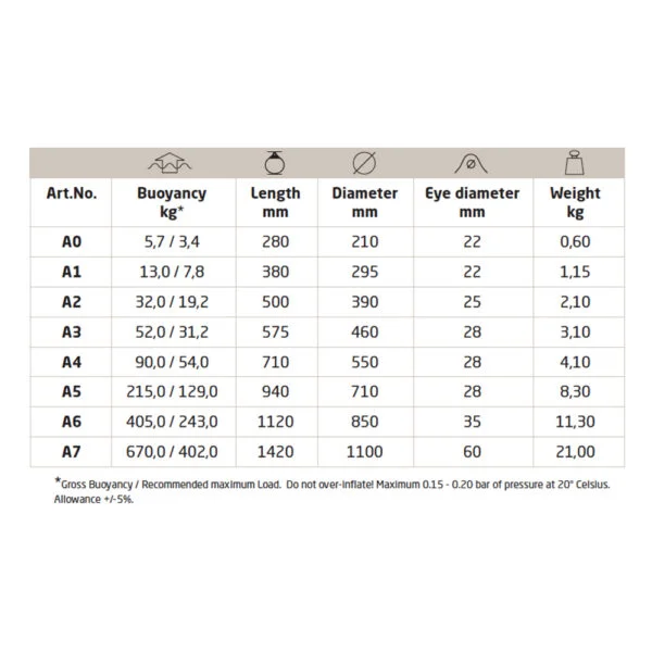 | Art.no | Buoyancy | Length | Diameter | Eye diameter | Weight | Product sheet |